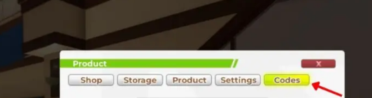 - Press the codes button at the top and type an active code into the text box.