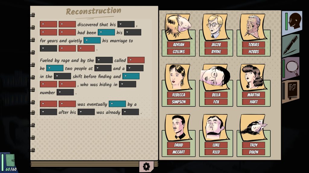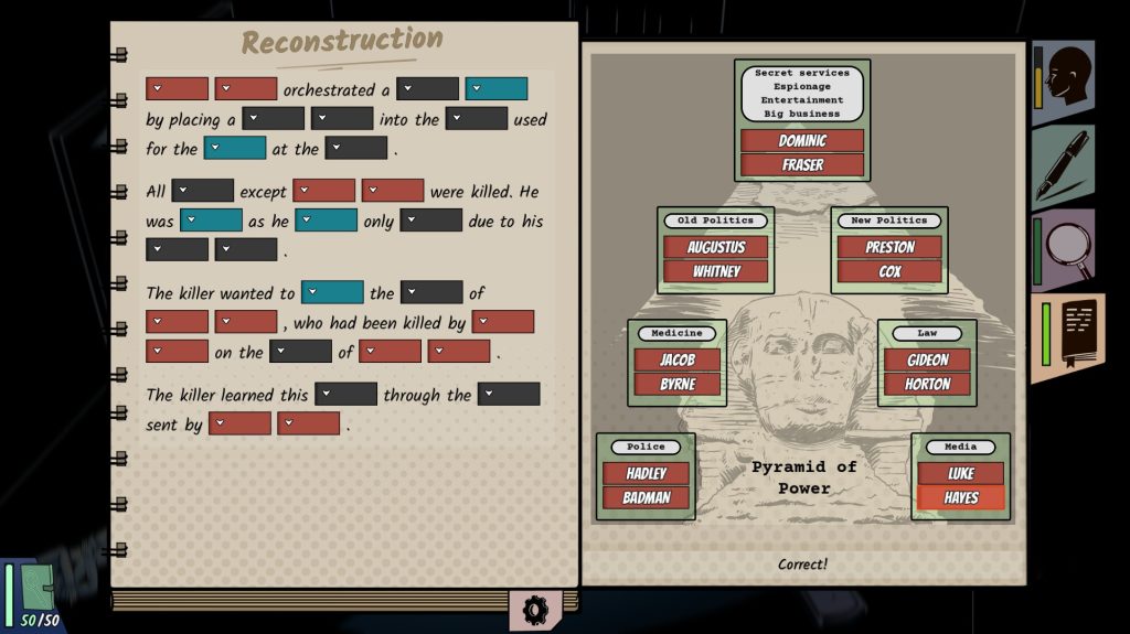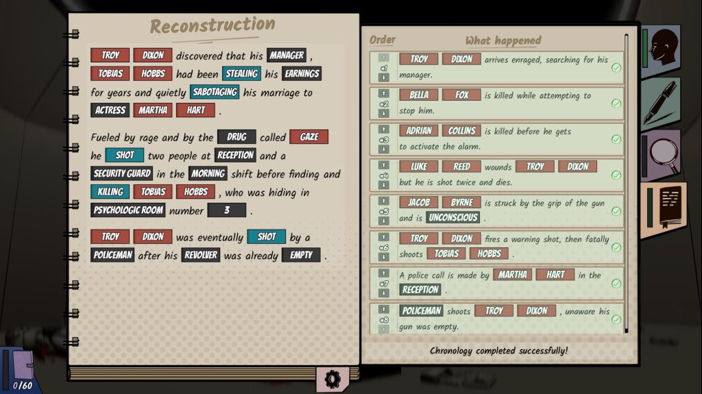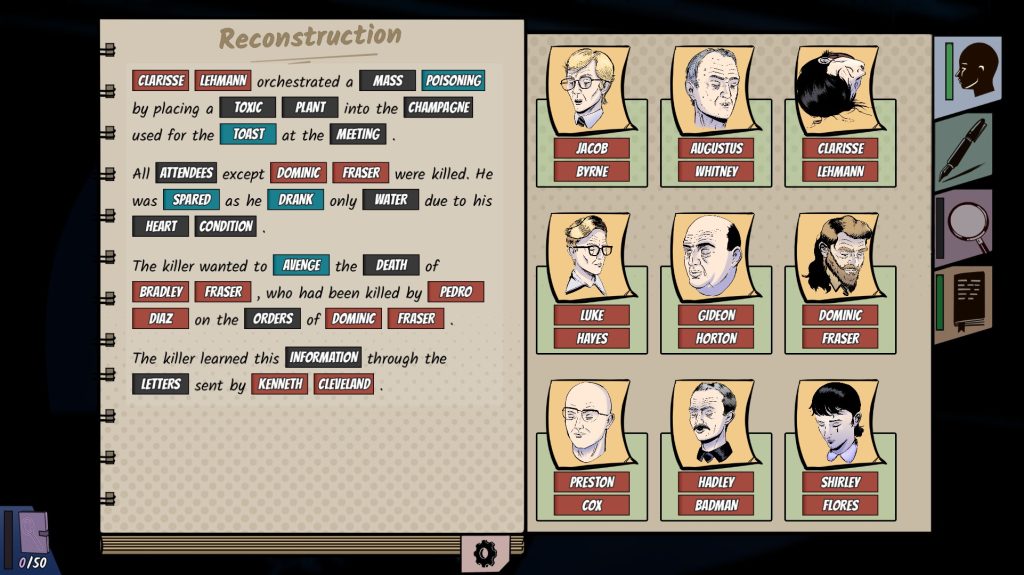 - Cases build on each other, creating an overarching narrative. If you get stuck on a later case, revisit an earlier one to see if new evidence connects the dots. It’s also helpful to name characters as soon as possible since they’ll reappear.