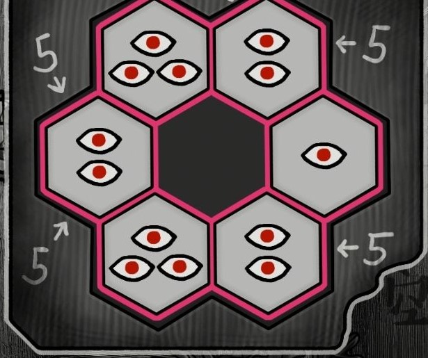 Stab the leg with the knife and take the medal. Go left, solve the capsule puzzle in the wall, enter the door, and solve the honeycomb puzzle on the next door.