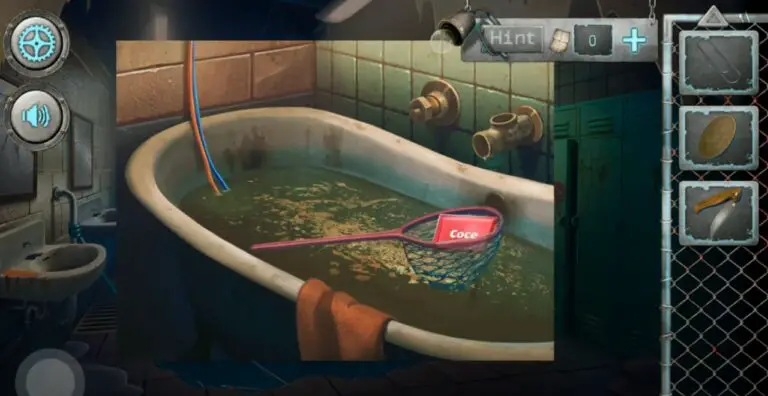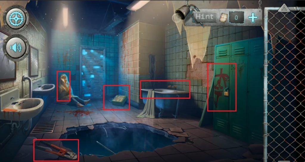 Find a spoon on the edge of the bathtub, then tap the box next to the body to play a mini-game and get a pipe clamp.