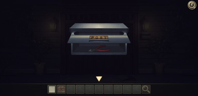 Go to your inventory, select the Wooden Crate, and cut its string using the Nipper to unlock it. Turn the crate around once it opens, collect the key from inside, and use it on the entrance door to step into the house.